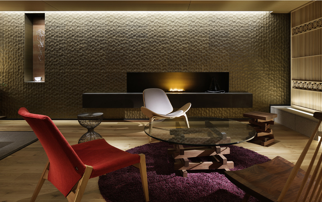 ゆらめく暖炉の炎と心地よい音楽に包まれたくつろぎの空間。